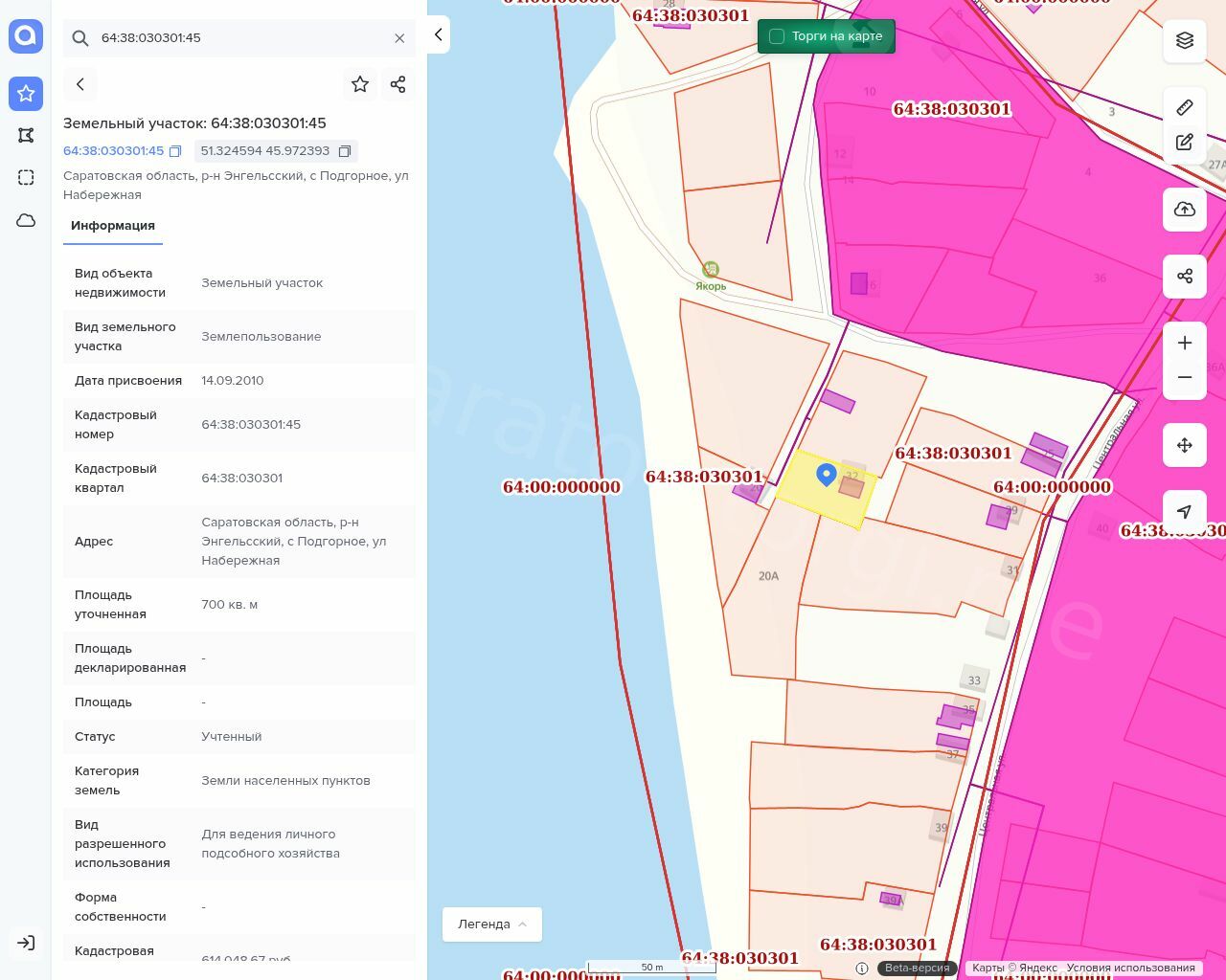 Лот №1. Земельный участок, площадь 700+/-19 кв.м., кадастровый (условный) номер: 64:38:030301:45 и жилой дом, площадь 46,2 кв.м., назначение: жилое здание, кадастровый (условный) номер: 64:38:030301:78 Находится в совместной собственности с супругой Горожаниной Ж.