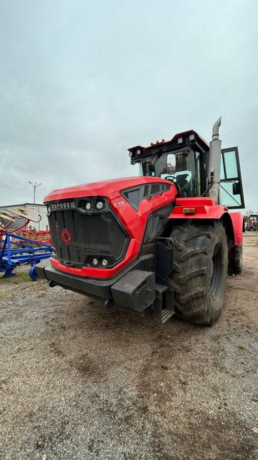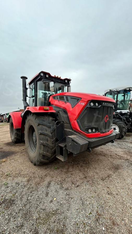 Колесный сельскохозяйственный трактор марка "Кировец" тип К-7М вариант К-742М Стандарт 1 в комплектации: Двигатель ТМЗ-8481.10-04: 420 л.с.,1900 об/мин,1960 Н•м. Роботизированная коробка передач, 16/8, четырехрежимная, с пауэршифт-переключением внутри режимов. Ведущие мосты с самоблокирующимися дифференциалами «ноу-спин», передний мост подрессорен. Шины 710/70 R38. Заднее навесное устройство кат. IV по ISO с ТСУ-1-Ж (брус тяговый) и ТСУ-3-К (крюк). Гидросистема рабочего оборудования 180 л/мин. Оборудование и сервис онлайн-мониторинга работы трактора. Комбинированная тормозная система. / КП42426А Зав. № 023T0821 Инв. № ТА0119005