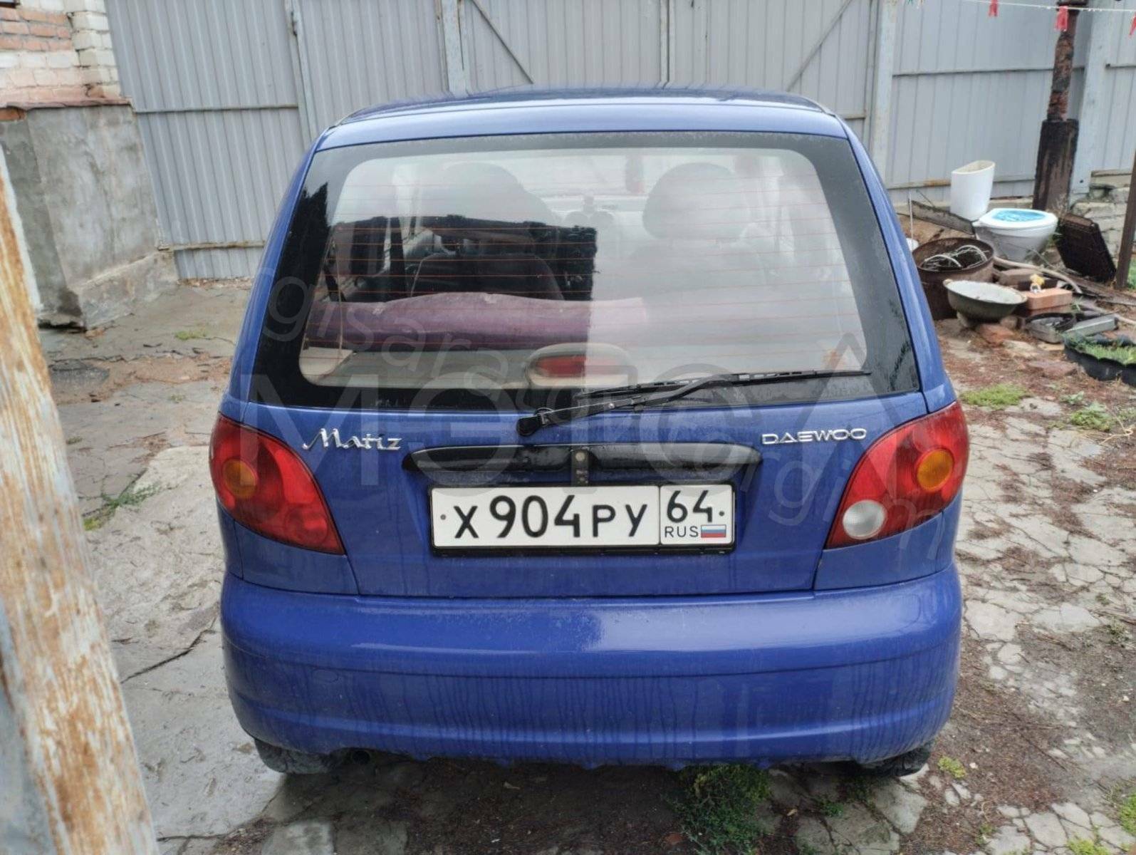Легковой автомобиль, марка: Daewoo, модель: Matiz, год изготовления: 2004 г.в., цвет: синий, VIN: XWB4A11BD4A022822, ПТС: 39 РН 096784, г/н: Х904РУ64, изготовитель (страна): АОЗТ УЗДЭУ АВТО (Узбекистан), модель двигателя: F8CV, тип двигателя: Бензиновый, на бензине, двигатель №: 191696КА1, мощность двигателя, л. с. (кВт): 51 (37), рабочий объем двигателя, куб. см: 796, шасси (рама) №: отсутствует, кузов №: XWB4A11BD4A022822, экологический класс: не установлено, разрешенная максимальная масса: 1210, масса без нагрузки: 810, организация-изготовитель ТС: АОЗТ УЗДЭУ АВТО (Узбекистан). Коробка передач - механика, передний привод, не на ходу, требуется ремонт (компрессия в одном цилиндре 2.5 в остальных 8). Местами коррозионные образования (малозаметные и заметные). Мероприятия по вывозу (проведению эвакуационных работ) осуществляется за счет средств победителя (покупателя). Ключи от транспортного средства представлены в единственном экземпляре и находятся у гражданина должника для ознакомления и осмотра предварительных покупателей, документы (СТС, ПТС) находятся у гражданина должника, вид собственности: индивидуальная. Пробег, км (по одометру): 157 554. Привод: Передний. Коробка передач: Механическая.