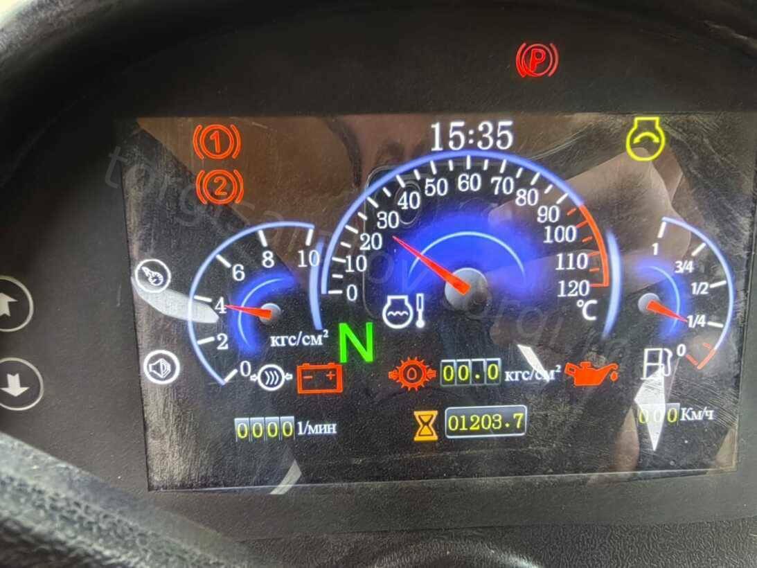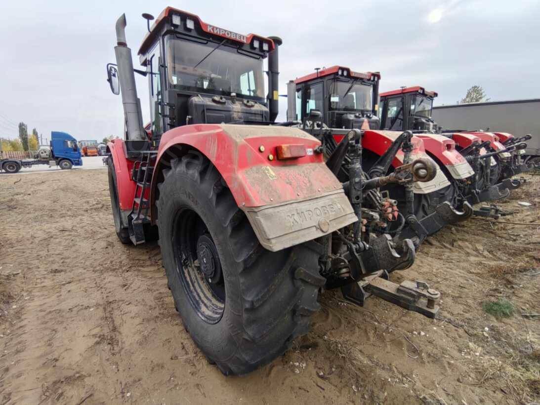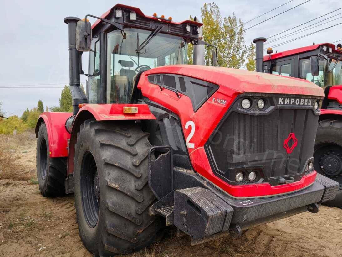 Колесный сельскохозяйственный трактор марка "Кировец" тип К-7М вариант К-742М Стандарт 1 в комплектации: Двигатель ТМЗ-8481.10-04: 420 л.с.,1900 об/мин,1960 Н•м. Роботизированная коробка передач, 16/8, четырехрежимная, с пауэршифт-переключением внутри режимов. Ведущие мосты с самоблокирующимися дифференциалами «ноу-спин», передний мост подрессорен. Шины 710/70 R38. Заднее навесное устройство кат. IV по ISO с ТСУ-1-Ж (брус тяговый) и ТСУ-3-К (крюк). Гидросистема рабочего оборудования 180 л/мин. Оборудование и сервис онлайн-мониторинга работы трактора. Комбинированная тормозная система. / КП42426А Зав. № 023T1655 Инв. № ТА0124053