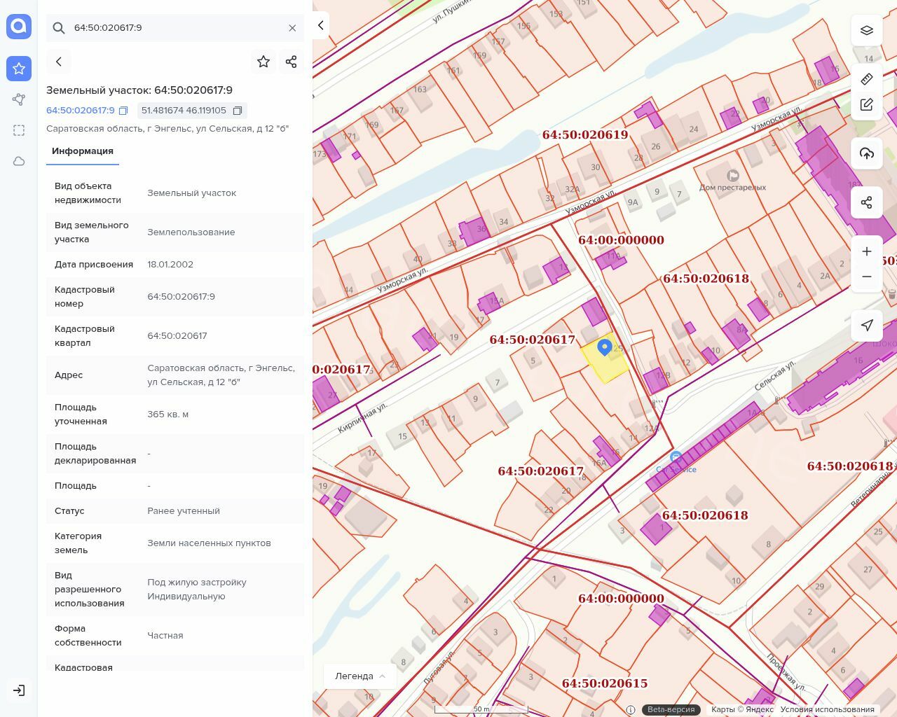 Земельный участок, площадь: 365 кв.м., с кадастровым номером 64:50:020617:9, категория земель: земли населенных пунктов, разрешенное использование: под жилую застройку индивидуальную