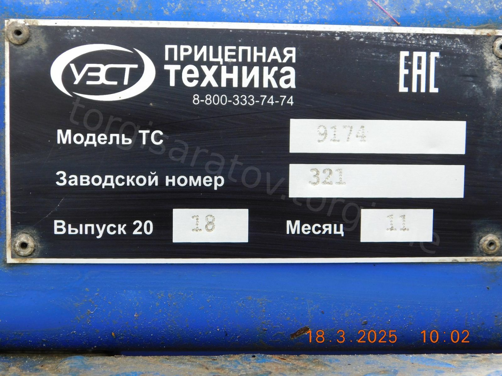 Полуприцеп-тяжеловоз УЗСТ 9174, VIN XKW917441J0000182, ВА 1220 64 (ВС 1535 74), инвентарный номер 219, количество 1